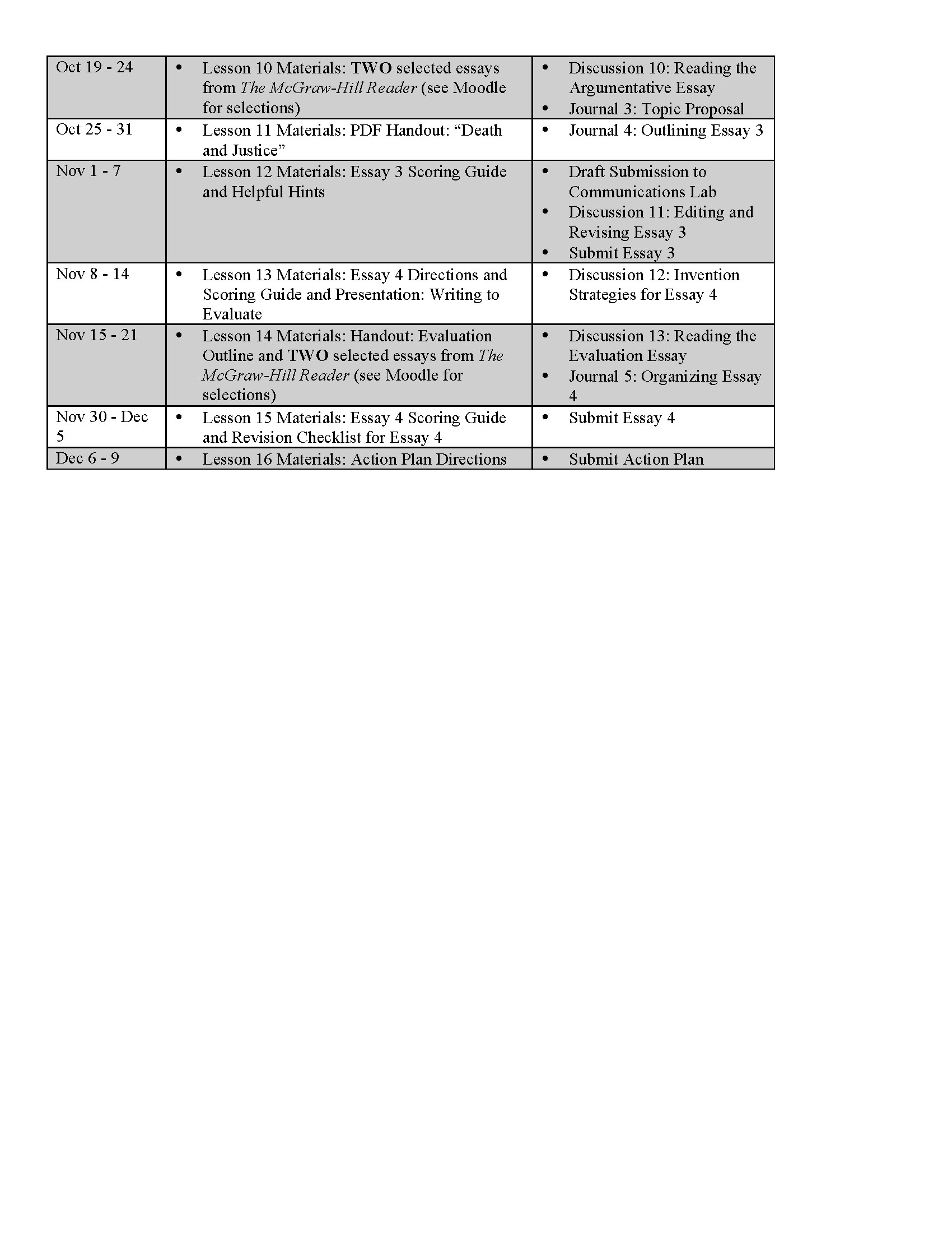 Course schedule for one of my sections of Composition I at OCCC.